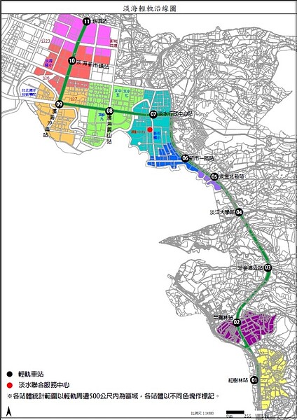 107年12月底始正式通車的淡海輕軌(綠山線),起站為捷運淡水線紅樹林站、終站為淡海新市鎮崁頂站,共計11站。其中紅樹林起站至淡水行政中心站採高架,其餘路段則為平面。淡海輕軌主體工程自103年11月動工,完工後於107年5月試車,並於同年12月24日正式啟用通車,期間皆是區域的熱門話題。 新北市淡水地政事務所為瞭解轄區內淡海新市鎮資訊,特別利用實價登錄資料庫及該所地政系統資料,統計輕軌試車(107年5月)前後交易之數據,分析試車前(106年7月1日至107年4月30日)及試車後(107年5月1日至108年2月28日)各站體周遭500公尺內社區之均價、交易量漲跌幅等資料庫數據進行分析。
